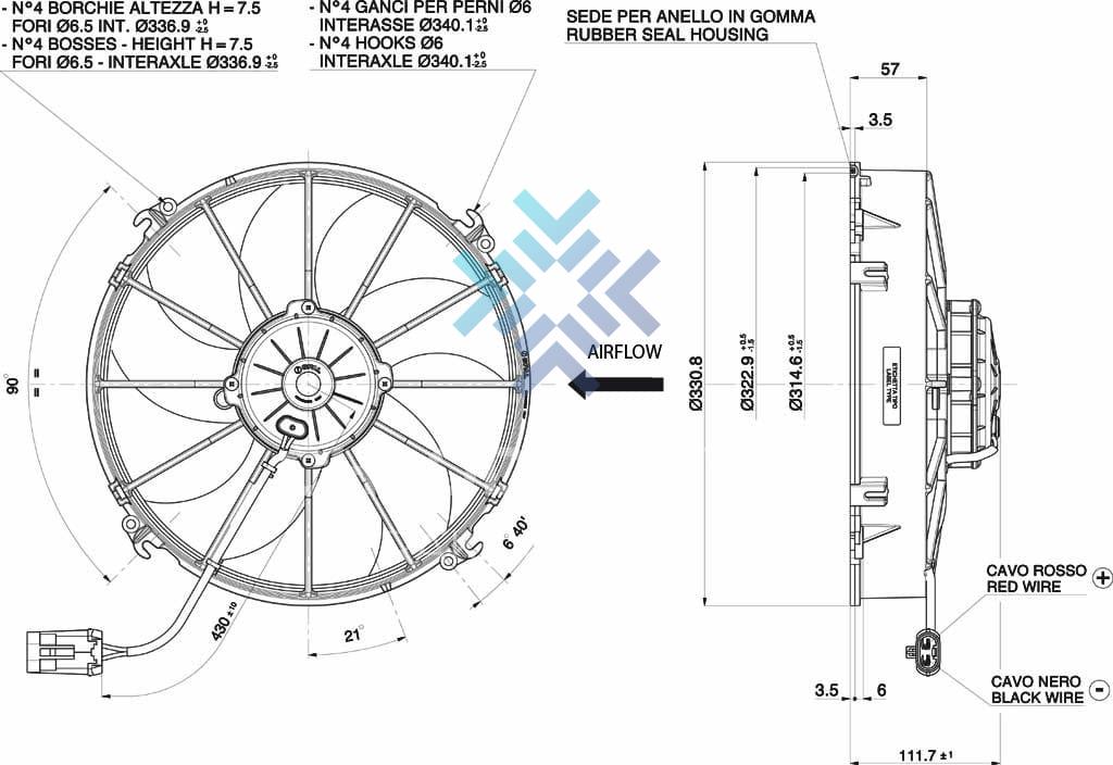 The diameter max with the housing: Ø 330 mm